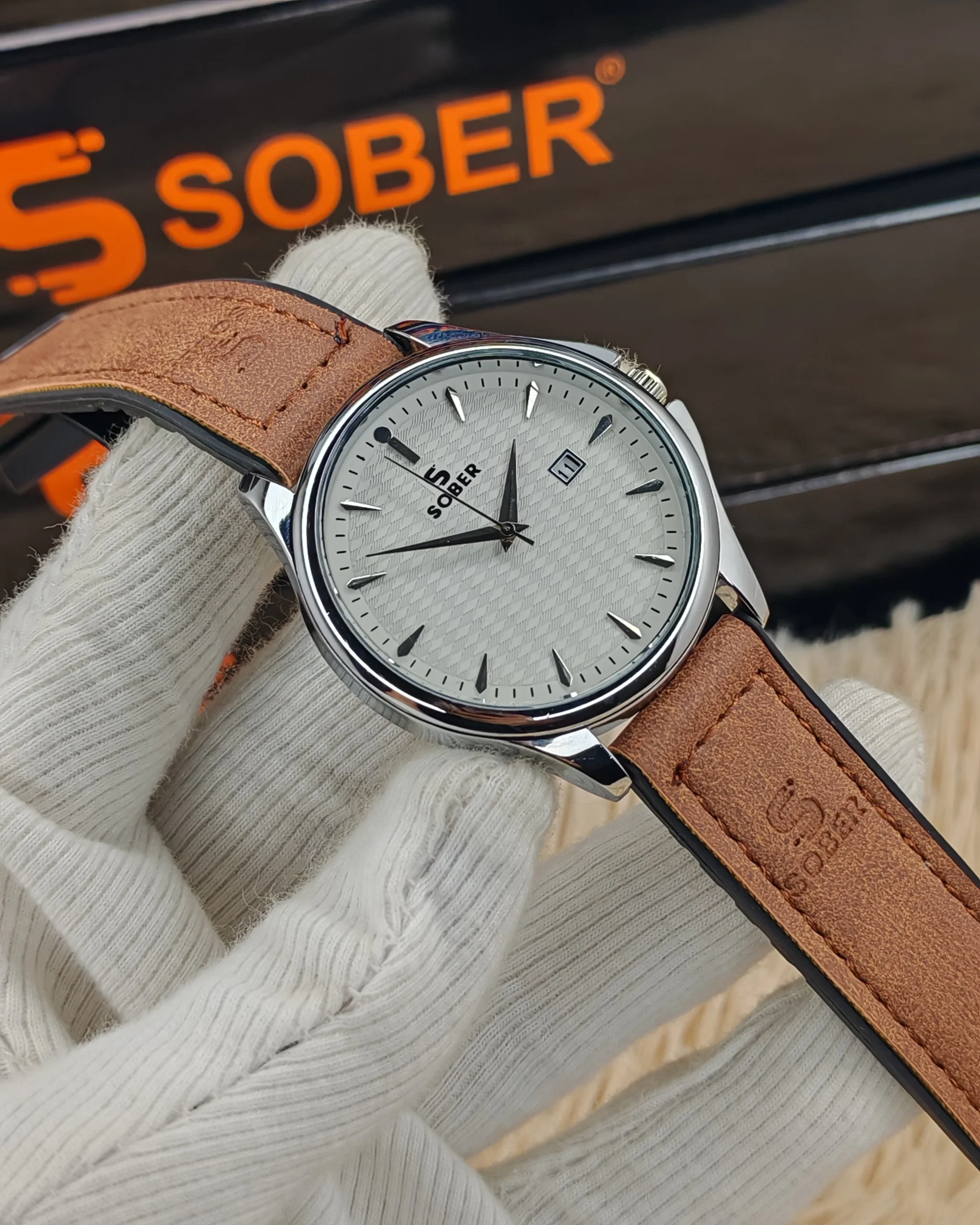 Sober belt- white dial brown belt
